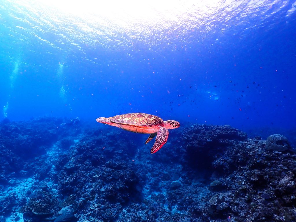 入ってすぐに見つけてくれたカメさんは丁度呼吸のタイミングだったようで水面まで上がってきてくれました!