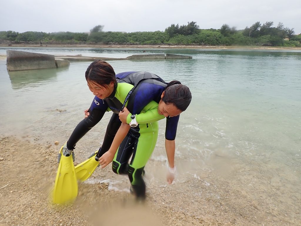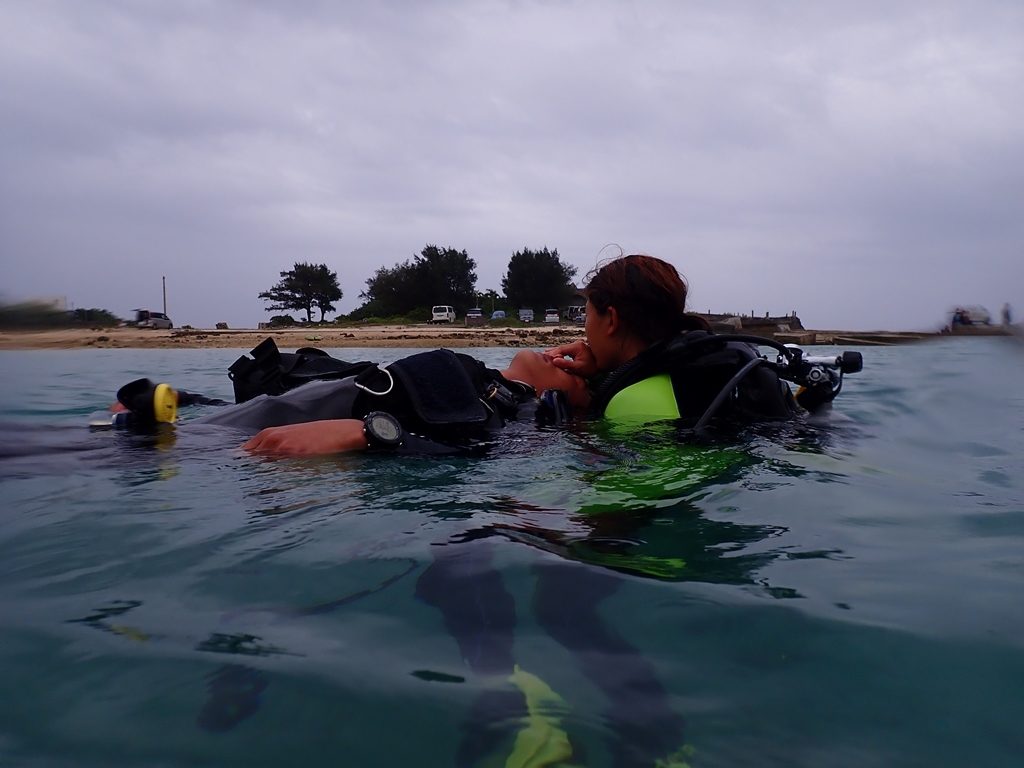 適正ウエイトのチェックから行い、重たくウエイトをつけていたことが判明!余分なウエイトを減らして、中性浮力の練習をしました^_^