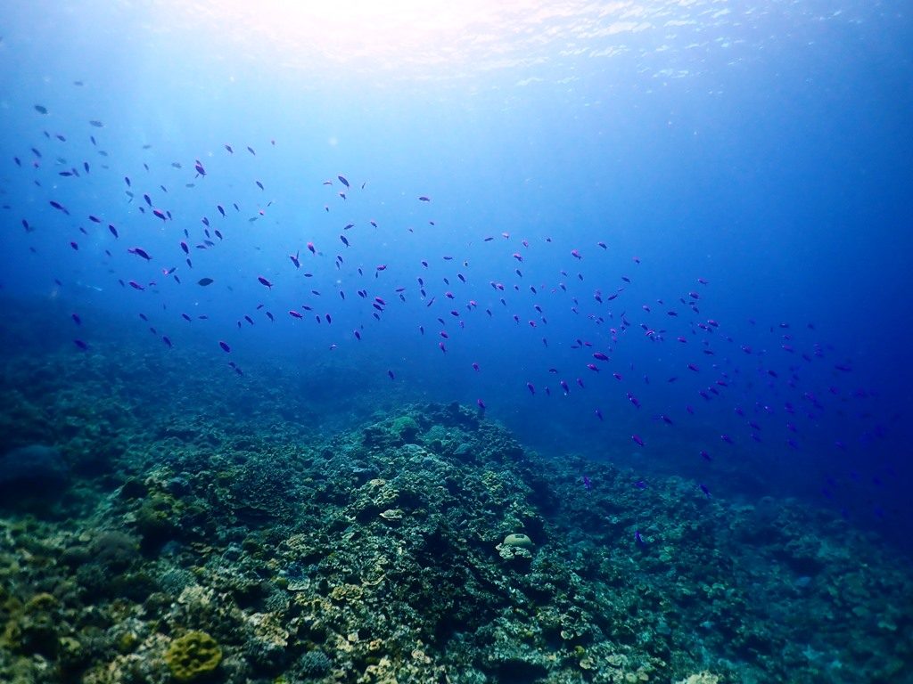 綺麗なサンゴの周りには魚もたくさん!!天気も良く魚影が映えてますね