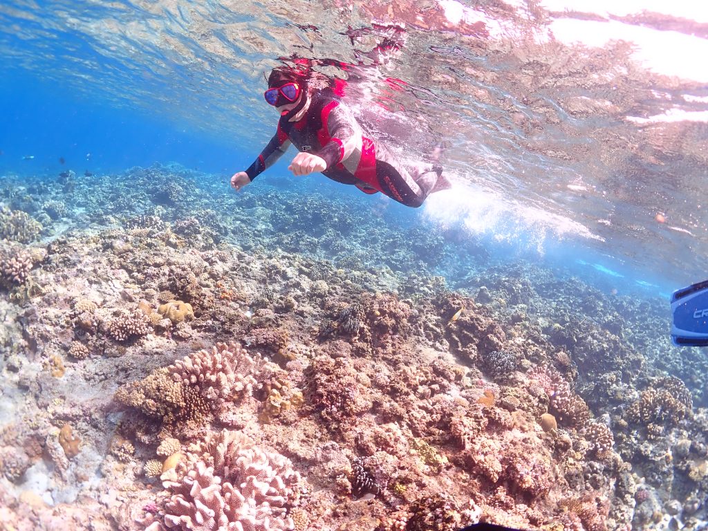浅瀬のサンゴを見ながらのシュノーケルはあまりの気持ちよさに疲れも吹っ飛び思わず泳ぎすぎるぐらい楽しみましたね♪