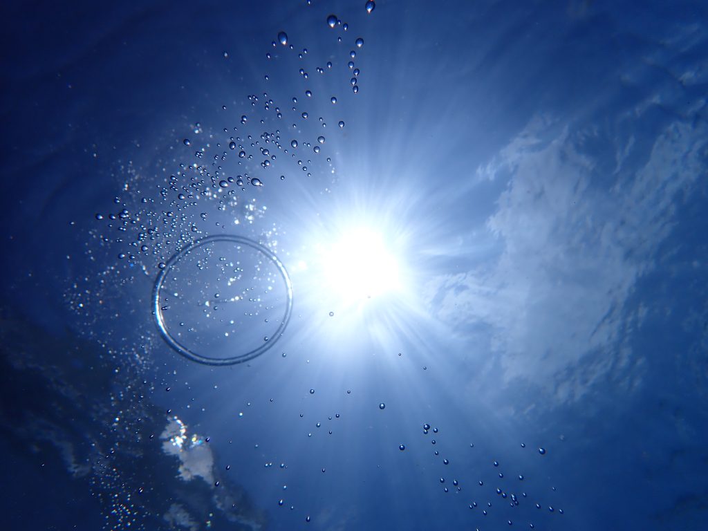 水面を見上げると水中からでも雲の形が見えてました~!