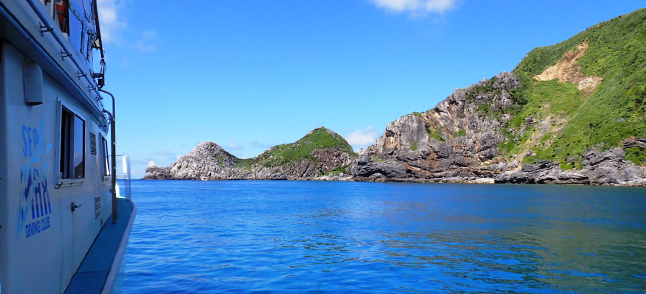 真っ白な砂地、海底洞窟、広大なサンゴ、ダイバーが近づいても逃げないウミガメなどがいるポイントなどを、1日かけて2 or 3ダイブします。